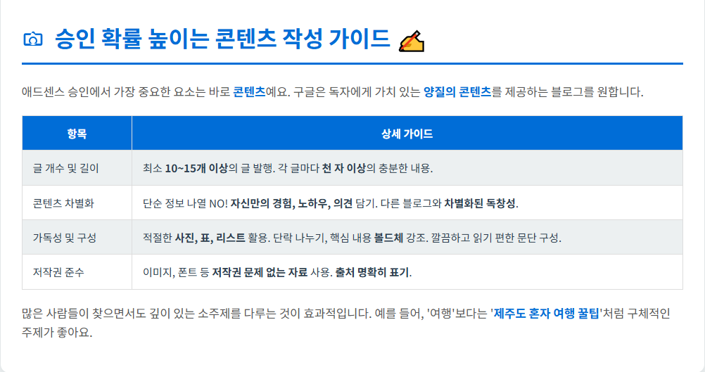 - 승인 확률 높이는 콘텐츠 작성 가이드 ✍️